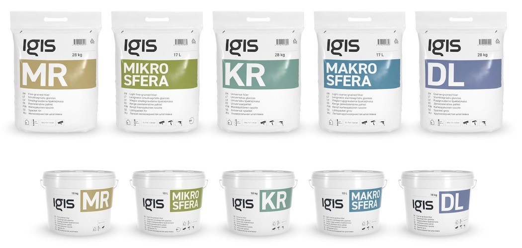 • For jointing, skimming and filling, the company “Igis” has prepared a system of coordinated products, which helps to reduce labour, time and material costs. The system includes the following products manufactured by “Igis”: Deep primer IGIS AG, filler for seams IGIS T or TAKTIKA G, fine-grained universal filler IGIS MIKROSFERA, IGIS KR, or Latexpolymer filler IGIS MR.